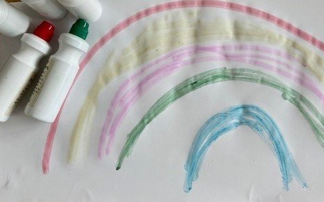 These aren’t quite the same as paint, but they are easy for little hands to use, they make large satisfying marks, and will support the development of gross motor skills.