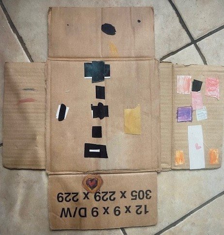- Use thick paper or card as the background (the side of an old cereal box works well).